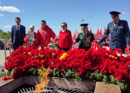 Корзину цветов к Вечному огню у кургана Славы в парке «Победа» возложили первый секретарь Чувашского рескома КПРФ А.М. Андреев и первый секретарь Чебоксарского горкома КПРФ З.П. Семенова. Свою корзину цветов возложили руководители Союза Советских офицеров. Остальные товарищи клали к Вечному огню гвоздики.