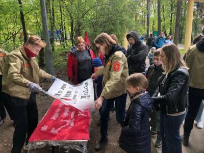 Члены Королёвского ЛКСМ, при поддержки первого секретаря Королёвского городского комитета КПРФ - Светланы Петровой, 4 мая провели раздачу нескольких сотен красных лент, символизирующих Победу в Великой Отечественной войне.