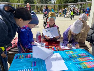 Председатель Пушкинского местного отделения Московского регионального отделения ООД «Всероссийский Женский Союз – Надежда России» Евгения Моторина на 9 мая в парке г. Пушкино провела акцию «Добрые письма солдатам». Каждый ребенок смог написать послания нашим военнослужащим на передовой, нарисовать рисунок и подарить частичку тепла.