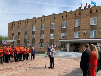 В Озёрах прошла торжественная церемония - поднятие копии Знамени Победы