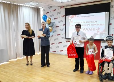 Дипломами и подарками от КПРФ наградила номинантов фестиваля депутат Екатеринбургской городской Думы, руководитель Свердловского отделения ВЖС «Надежда России» Виктория Ивачева.