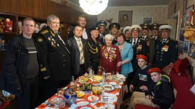 Конечно же, это прекрасная женщина, коммунист - Галина Павловна Брок-Бельцова, штурман легендарного пикирующего бомбардировщика ПЕ-2 гвардейского Борисовского орденов Суворова и Кутузова бомбардировочного авиационного полка имени Героя Советского Союза Марины Расковой, гвардии старший лейтенант в отставке. Галина Павловна 9 Мая ежегодно принимает участие в параде на Красной площади. Это Пётр Кузьмич Шелохаев, который прошёл пять войн. Во время Великой Отечественной войны он в составе авиаполка двухмоторных пикирующих бомбардировщиков Пе-2 дошёл до Венгрии. После войны в составе частей военно-транспортной авиации Пётр Кузьмич выполнял задания правительства в Китае, Корее, Сирии, Египте, Алжире и Мавритании. Это Владо Душанович Зрнич – полковник в отставке, кандидат военных наук, югославский партизан. Елена Фёдоровна считает, что эти люди для нас являются достойным примером для подражания, это герои, чьи подвиги вписаны в страницы истории нашей страны. И сегодня, когда фашизм поднял свою голову, именно такие, как они являются примером отваги и мужества для тех ребят, которые принимают участие в спецоперации на Украине. Сегодня, как никогда каждый осознает какой страшной ценой нашим прадедам досталась Победа в том далеком 1945 году. Было приятно видеть, как наших дорогих ветеранов поздравили военнослужащие Щёлковского гарнизона, артисты Центрального клуба Воздушно-Космических войск, курсанты Кадетской школы-интернат с первоначальной летной подготовкой имени трижды Героя Советского Союза А.И. Покрышкина, курсанты клуба Каскад, также соседи и просто прохожие, которые выразили слова благодарности ветеранам за Победу в том, уже таком далёком 1945-м году. В ответном слове Галина Павловна Брок-Бельцова поблагодарила всех, кто пришёл поздравить их, а также вспомнить тех соратников, однополчан, что уже давно почили.