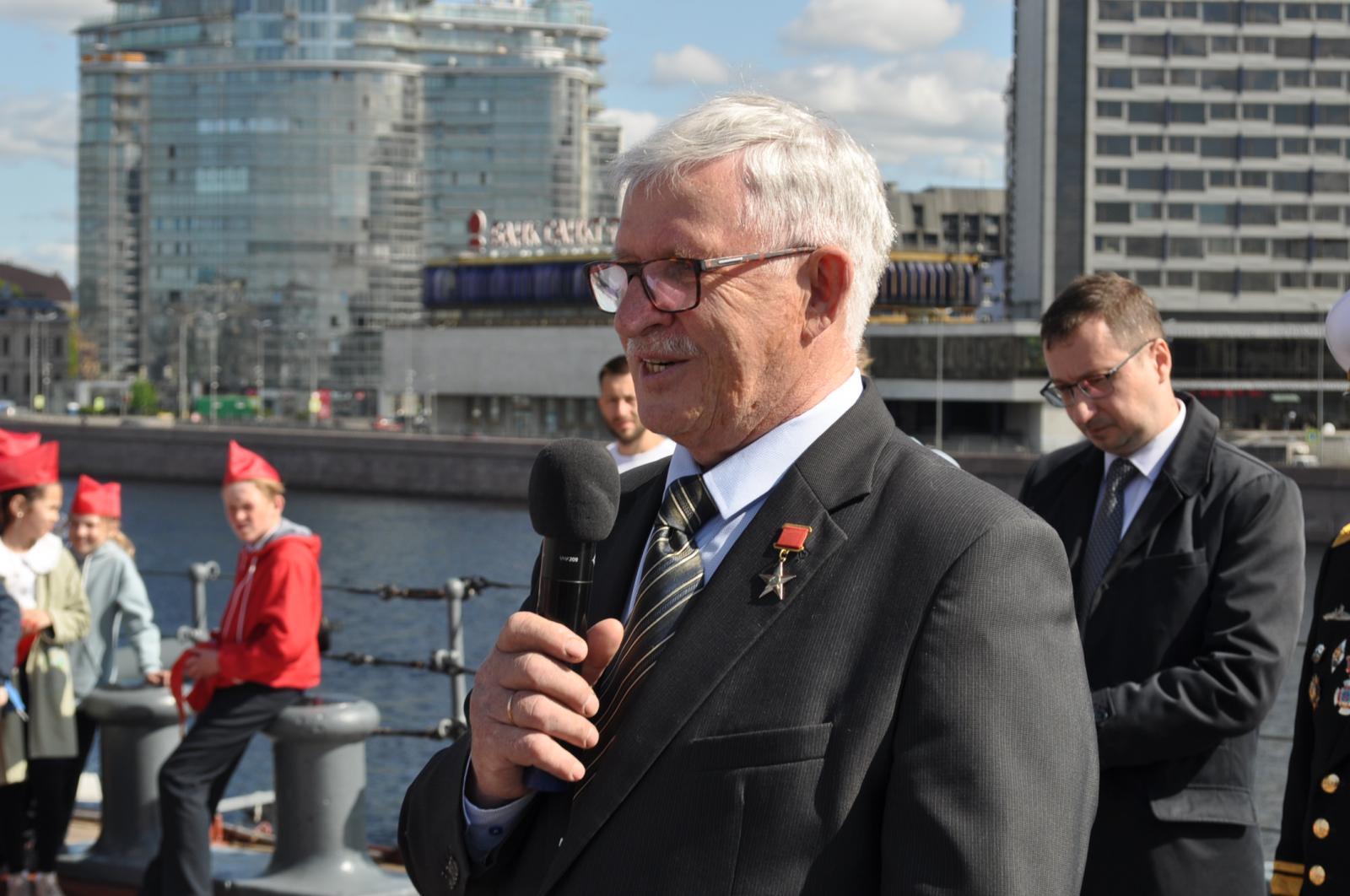 Также слово было предоставлено председателю Комитета Героев Социалистического Труда Санкт-Петербурга и Ленинградской области, строителю Байкало-Амурской магистрали Александру Александровичу Шанцеву. Он поделился своими воспоминаниями о том, как его принимали в пионеры, а затем пожелал будущим пионерам гордо нести красное знамя. А ветеран ВМФ и контр-адмирал Кирилл Алексеевич Тулин, пожелав ребятам быть хорошими гражданами, продекламировал отрывок из революционного стихотворения Пушкина "К Чаадаеву".