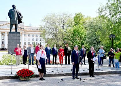 Завершилась линейка возложением цветов к памятнику В.И. Ленина.