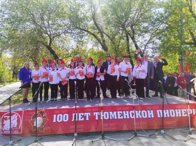 Делегации региональных отделений партии наградили участников смотра-конкурса строя и песни, посвящённого столетию Тюменской пионерии. Диплом и медали за 1 место получили пионеры из отряда «Лучики» (г. Заводоуковск), 2 место занял отряд «Юность» (Ярковский район), 3 место завоевал отряд «Борцы» (г. Тюмень). Все участники конкурса получили в подарок книги о пионерах-героях.