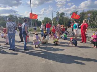 На празднике работало несколько интерактивных площадок, за участие в которых каждый ребенок получил попкорн. Дети с удовольствием участвовали в эстафетах, рисовали рисунки на асфальте на заданную тему, а также играли в дворовые игры.