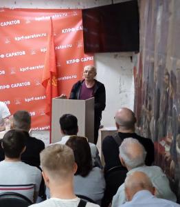 С основным докладом выступил первый секретарь Саратовского горкома КПРФ, член ЦК КПРФ Александр Анидалов, рассказавший о ходе и итогах VI майского пленума и задачах КПРФ по борьбе с фашизмом и патриотическому воспитанию подрастающего поколения.