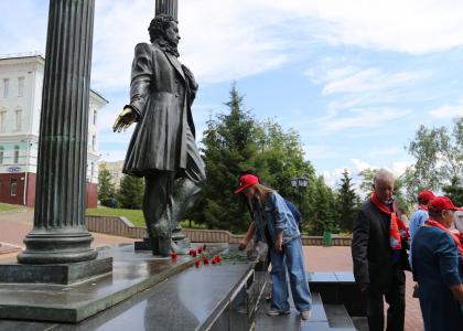 После поздравлений, коммунисты возложили цветы к памятнику А.С. Пушкину и прошли в городской парк, где все желающие читали стихи великого поэта.