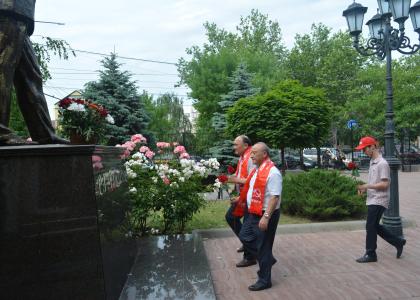 Коммунисты возложили цветы к памятникам А. С. Пушкина и Р.Г. Гамзатова, установленным во дворе театра.