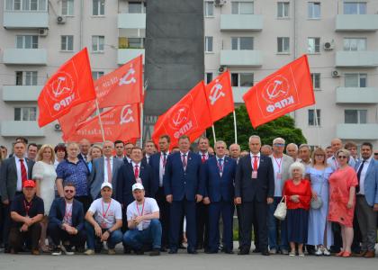 Утром, прежде чем пройти к месту проведения мероприятия, руководители компартии и посланцы регионов юга России побывали у памятника В.И. Ленину на площади его имени, чтобы отдать дань уважения и возложить цветы к подножию монумента вождю революции и создателю Советского государства.