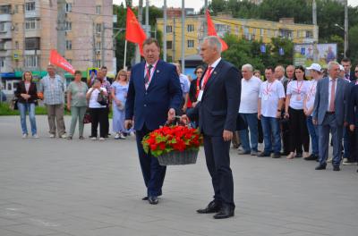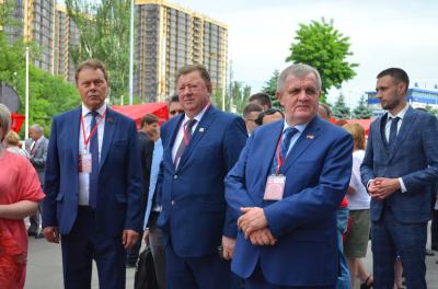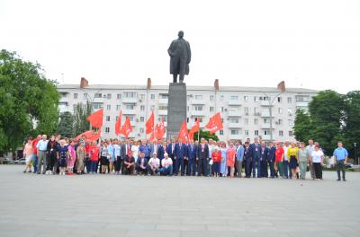 Утром, прежде чем пройти к месту проведения мероприятия, руководители компартии и посланцы регионов юга России побывали у памятника В.И. Ленину на площади его имени, чтобы отдать дань уважения и возложить цветы к подножию монумента вождю революции и создателю Советского государства.