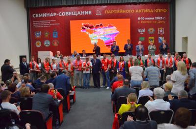 Работа пленарного заседания семинара-совещания открылась торжественным приемом в ряды пионерской организации донских мальчишек и девчонок, далее заместитель Председателя ЦК КПРФ В.И. Кашин и секретарь ЦК КПРФ, первый секретарь ЛКСМ РФ В.П. Исаков вручили партийные и комсомольские билеты новому пополнению коммунистических рядов.