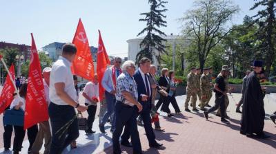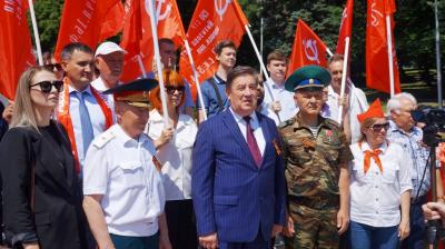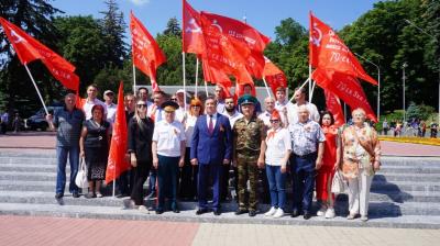 Сегодня мероприятия ко Дню памяти и скорби продолжились на том же месте в краевой столице чествованием писавших о Великой Отечественной поэтов Ставрополья, под Замёнами Победы, которые с гордостью несли партийцы и комсомольцы под руководством члена ЦК КПРФ, первого секретаря Ставропольского крайкома партии, первого заместителя председателя регионального парламента, руководителя фракции КПРФ в заксобрании СК В. И. Гончарова.