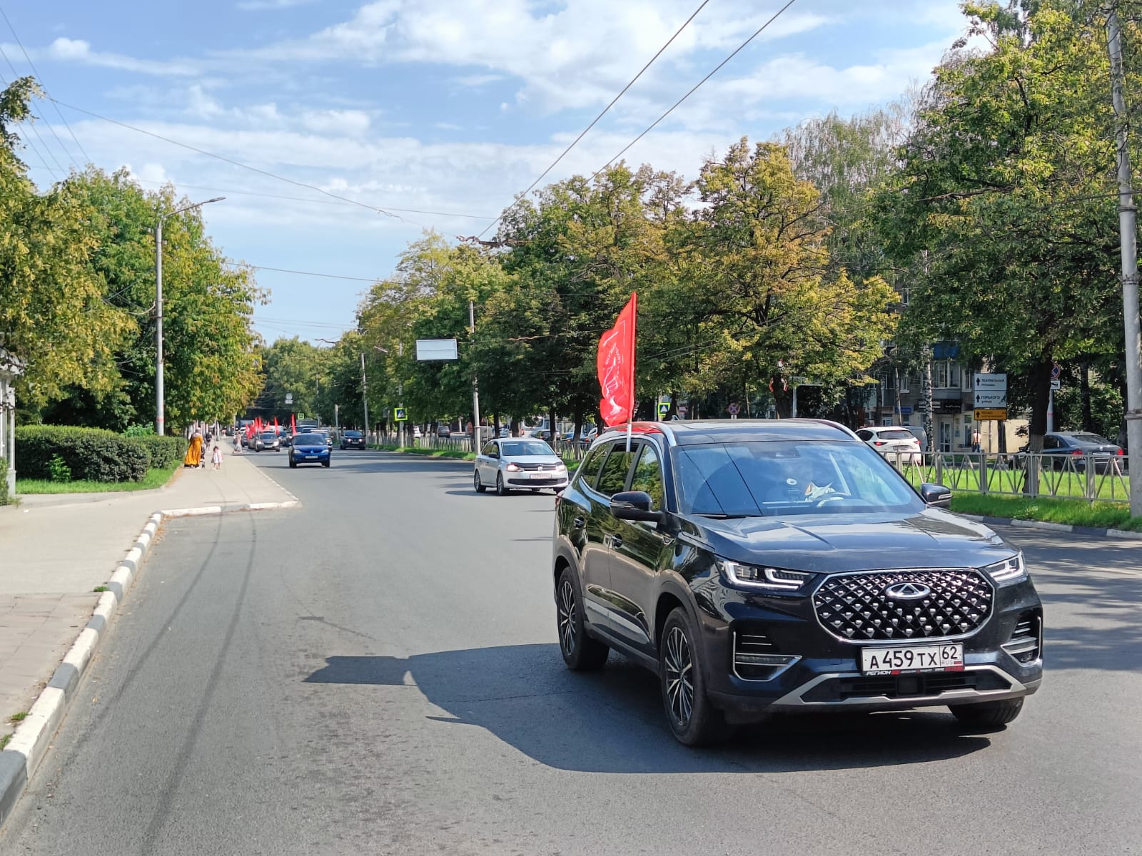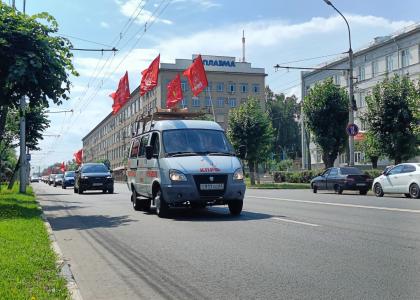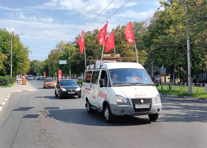 Автоколонна в убранстве Красных Знамён с музыкальным патриотическим сопровождением проехала по городу Рязани. В автопробеге приняли участие: первый секретарь Рязанского областного отделения КПРФ Д.С. Сидоров, секретари Рязанского областного отделения КПРФ: Э.Н. Волкова, Л.М. Кривцова, Е.Н. Морозов; депутат Рязанской городской Думы Д.О. Милюков; секретарь Рязанского РК КПРФ С.А. Холопов; коммунисты: Н.Е. Комаров; М. Савушкин, М. Вереин, Ю.В. Кохов, А. Топорков, Ю. Балалин, В. Бобров, А. Максаков и другие товарищи.