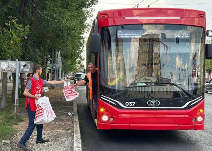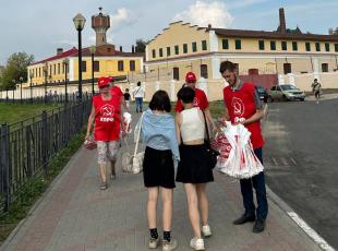 Разделившись на две группы, участники акции прошли от штаба КПРФ по улице Красной Армии, по проспекту Фридриха Энгельса к Набережной и далее по проспекту Ленина вернулись к штабу. По пути они раздавали пакеты с агитационными материалами КПРФ.