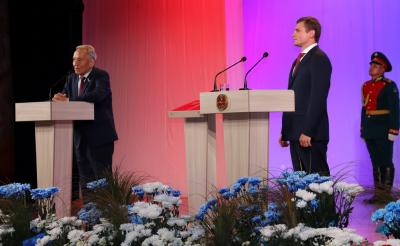 Валентин Коновалов принял присягу на конституциях Российской Федерации и Республики Хакасия, поклялся добросовестно исполнять свои обязанности и верно служить народу. В честь вступления Валентина Коновалова в должность Главы Республики Хакасия – Председателя правительства Республики Хакасия прозвучали гимны Российской Федерации и Республики Хакасия.