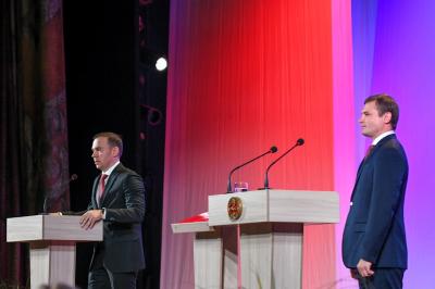 Председатель Верховного Совета Республики Хакасия Владимир Штыгашев отметил, что правительству Коновалова при поддержке Верховного Совета за пять лет удалось сделать то, что не удавалось сделать в республике в предыдущие 10 лет. В частности, за два года удвоить доходы и расходы республиканского бюджета. «Такого примера в стране нет», – подчеркнул Владимир Николаевич. Но есть еще много нерешенных задач, есть над чем работать: рост благосостояния людей, защита материнства и детства, вопросы экологии, многое другое. «Вы ни разу не нарушили присягу, которую дали пять назад, – сказал он, – это залог того, что вы и впредь будете делать все для развития нашей республики и улучшения жизни людей. В добрый путь!»