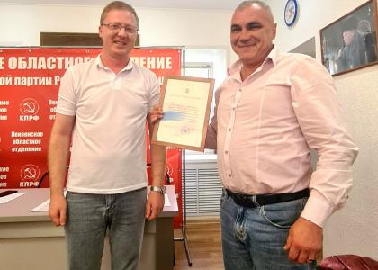 В ходе семинара руководитель областного комитета КПРФ Дмитрий Филяев также вручил Благодарственное письмо от Донецкого республиканского комитета КПРФ первому секретарю Бессоновского райкома КПРФ, депутату Собрания представителей Бессоновского района Михаилу Пензину, который активно участвует в сборе и доставке гуманитарной помощи жителям Донбасса и нашим военнослужащим.