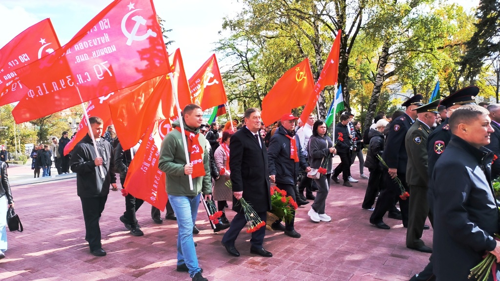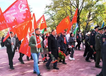 «Красную колонну» возглавили член ЦК КПРФ, первый секретарь Ставропольского крайкома КПРФ, глава фракции Компартии в региональном заксобрании, первый заместитель Председателя Думы края В.И. Гончаров, а также депутат-коммунист гордумы столицы края Т.М. Чершембеев.
