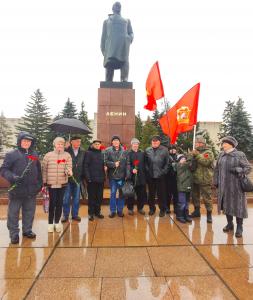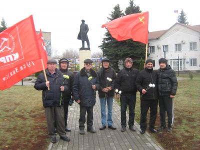 29 октября моршанские коммунисты во главе с первым секретарём райкома КПРФ Михаилом Павловичем Рузановым и первым секретарём горкома Юрием Михайловичем Поповым возложили цветы к памятнику В.И. Ленину и к мемориальной доске, посвящённой девушкам-комсомолкам, отправившихся на фронты Великой Отечественной войны в апреле 1942 г. Путь от памятника Ленину до мемориальной доски моршанские коммунисты прошли под красными знамёнами.