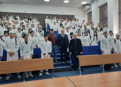 Известный писатель, автор многих книг, в произведениях которого раскрываются характеры главных сыновей страны гор, его герои — это строители, врачи, космонавты, обычные труженики, Левсет Дарчев презентовал свою книгу «Хирург». Это произведение о жизни и деятельности академика Р.П. Аскерханова – светила медицины. Отвечал на вопросы студентов и сам задавал вопросы. А самым смекалистым студентам подарил свои книги с подписью автора.