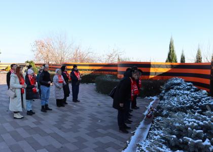 Завершилась праздничная акция возложением цветов к бюсту И.В. Сталина.