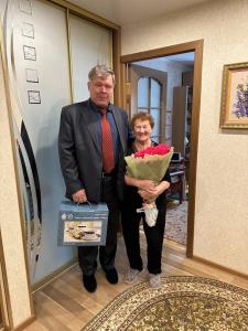 Они вручили Николаю Николаевичу памятную медаль ЦК КПРФ «80 лет Орловско-Курской битве» от Председателя ЦК КПРФ Г.А. Зюганова, а также книгу «Москва в годы Великой Отечественной войны 1941-1945 годов». Традиционно пообщались в теплой обстановке и пожелали ему всего самого лучшего и главное - здоровья!