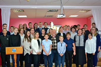 Михаил Столяров рассказал ребятам о тех непростых днях 1941 года, когда впервые после обороны, советские войска погнали врага на запад. Михаил Столяров рассказал о трудностях, с которыми сталкивались в этот период солдаты 1-го кавалерийского корпуса генерала-полковника П.А. Белова. Бойцам приходилось обматывать копыта лошадей тряпками, чтобы они не скользили по гололёду во время движения. Рассказал о трудностях переправы. Слабые мосты через Оку в Кашире и Озерах, и через реку Осетр в Зарайске плохо или вовсе не годились для переправы танков. Поэтому танкистам приходилось гонять технику за 70-80 километров в обход.