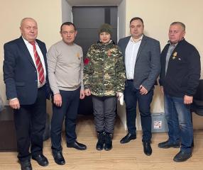 Также медалью в ознаменовании 140-летия со дня рождения И.В.Сталина, который в 1945 году сломил хребет фашизму и чьё день рождения мы будем отмечать буквально на днях, награждена коммунистка Наталья Дубовик, которая на протяжении всей СВО, проявляя мужество и храбрость, под Красным Знаменем передаёт бойцам гуманитарную помощь на передовую лично в руки.