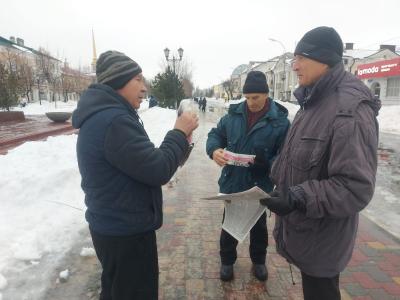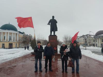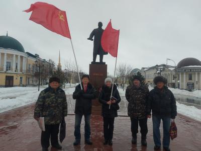 Плохая погода не помешала мичуринским коммунистам выйти к памятнику В.И. Ленину на центральной площади города, чтобы напомнить горожанам о 144-й годовщине со дня рождения великого советского партийного руководителя Иосифа Виссарионовича Сталина.