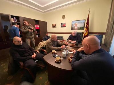 Еще одной важной миссий делегации были встречи с бойцами различных подразделений. Особенно тепло прошла встреча с давними друзьями из интернациональной бригады «Пятнашка» и их командиром Ахрой Авидзба.