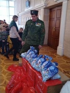 Тогда главный праздник детворы Луганщины проходил в неотапливаемых помещениях, которые некогда, да и нечем было украсить. Праздничный концерт для них организовался экспромтом, одним из главных исполнителей на нём стал приехавший в составе нашей делегации из Москвы актёр театра и кино Николай Сахаров. Поначалу закутанные в пальто и платки маленькие зрители были не по-детски серьезными, скованными. Не только от холода и недоедания, но и от утрат, которые принесла в их жизнь война. Все изменилось как по мановению палочки, когда они услышали от вышедших на сцену приветствовать их гостей из Москвы, что каждый из них получит новогодний подарок. Дети тут же оживились, защебетали, многие начали подпрыгивать в креслах, смеяться, хлопать в застывшие ладошки. Как же они обрадовались! С каким трепетом брали из наших рук небольшие яркие коробочки с шоколадными конфетами лучших российских производителей! А мы еле сдерживали слёзы, глядя, как прижимают они к груди эти новогодние подарки - символ утраченной мирной счастливой детской жизни…