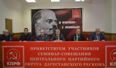 В работе семинар-совещания под руководством первого секретаря Дагестанского рескома КПРФ, руководителя фракции КПРФ в Народном Собрании Республики Дагестан С.К. Абдулхаликова приняли участие секретари рескома ДРО КПРФ, депутаты Народного Собрания Республики Дагестан, заведующие отделами рескома ДРО КПРФ, первые секретари районных и городских комитетов центрального партийного округа ДРО КПРФ; секретари по организационно-партийной и агитационно-пропагандистской работе, секретари первичных партийных отделений.