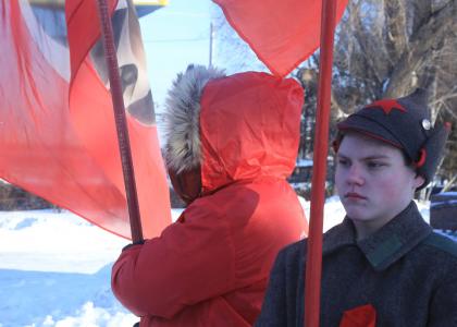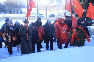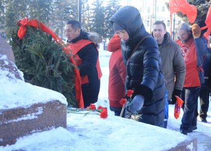 Ближе к вечеру коммунисты встали в почетный караул у памятника В.И. Ленину около Медакадемии. Там акцию возглавляли депутаты Законодательного Собрания области Адам Погарский и Константин Ткачев.