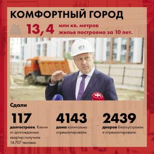 За 10 лет работы мэром Анатолия Локтя построено 13,4 млн кв. метров жилья. Сдали 117 долгостроев. Ключи от долгожданных квартир получили 14 707 человека. 4143 домов капитально отремонтировали. 2439 двор благоустроили и отремонтировали.