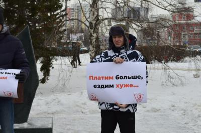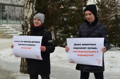 В Барнауле комсомольцы 27 января провели пикет по проблемам общественного транспорта в городе. Поводом для протестной акции стали планы предприятий-перевозчиков повысить плату за проезд с 30 до 35 рублей. Предыдущее повышение цен, отмечают участники акции, к сожалению, не отразилось на качестве услуг.
