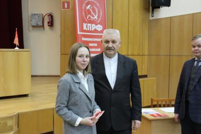В начале были торжественно вручены партийные билеты юношам и девушкам, а также отмечены благодарственными письмами отличившиеся в агитационной работе и в избирательных комиссиях коммунисты и сторонники КПРФ.