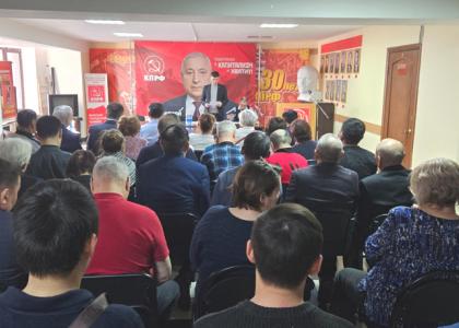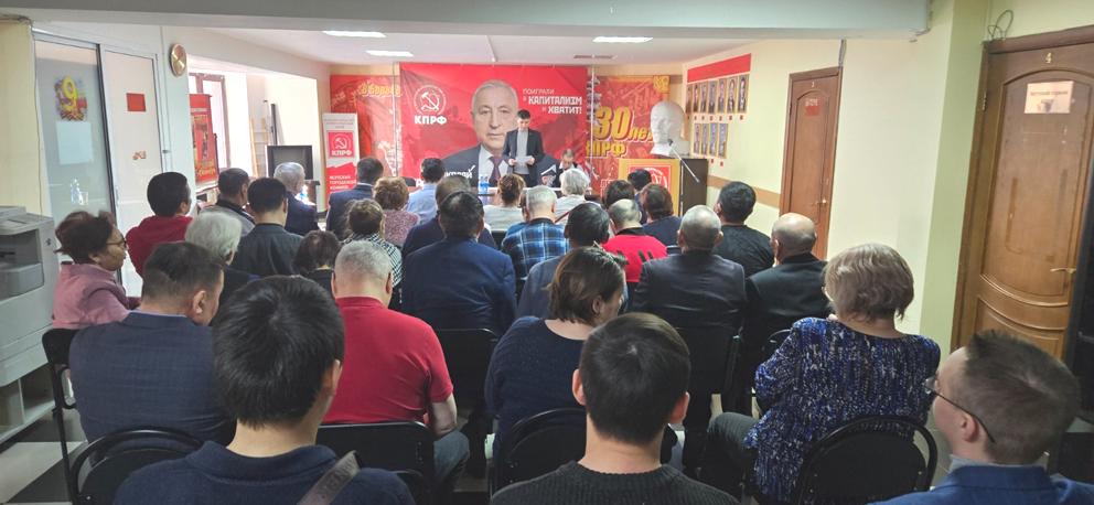 По первому вопросу выступил первый секретарь Якутского рескома КПРФ Виктор Губарев. Вначале Виктор Николаевич охарактеризовал сложность современной политической ситуации в мире и стране, связанной в том числе с избирательной кампанией по выборам президента РФ. Он сказал, что КПРФ должна приложить все усилия для победы на выборах своего достойного кандидата — Николая Харитонова.