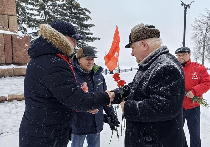 Сначала прибывшие в город на Волге члены Бюро во главе с Первым секретарём областного Комитета партии А.Д. Бойковым, совместно с представителями Кинешемского городского отделения КПРФ, провели церемонию возложения цветов к памятнику В.И. Ленину на Волжском бульваре.