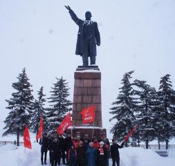 После этого присутствующие возложили красные гвоздики к памятнику вождю мирового пролетариата.