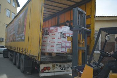 В гуманитарном конвое большом количестве переданы крупы и макаронные изделия, мука, мясные и рыбные консервы, печенье, чай, сахар, бутилированная вода и многое другое.