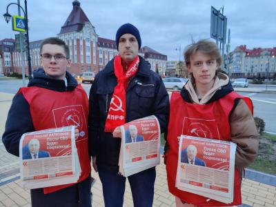 Комсомольцы и коммунисты Калининградской области продолжили участие в массовом распространении агитационно-пропагандистских материалов о кандидате в президенты Российской Федерации от Коммунистической партии и Народно-патриотических сил Николае Михайловиче Харитонове.
