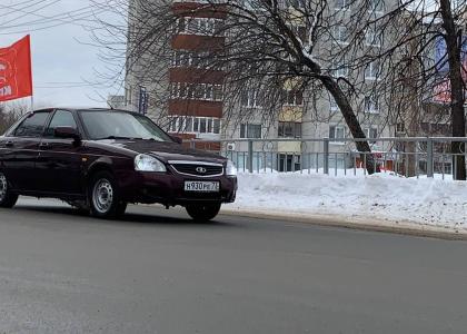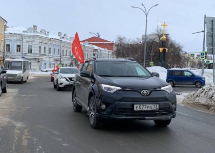 Чуть позже, по всем районам города состоялся праздничный автопробег с Красными Знаменами.