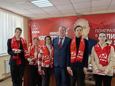 Перед началом заседания А.Д. Бойков, по традиции, вручил ряду вновь вступивших в ряды КПРФ, а также ЛКСМ РФ, партийные и комсомольские билеты.