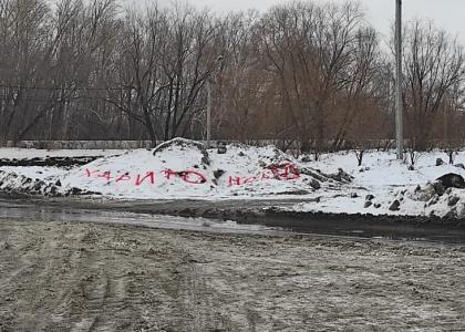 Выручает зима. Если любые «несанкционированные» надписи на стенах домов считаются «нарушением норм визуального облика города», то «правил оформления сугробов» еще не придумали.