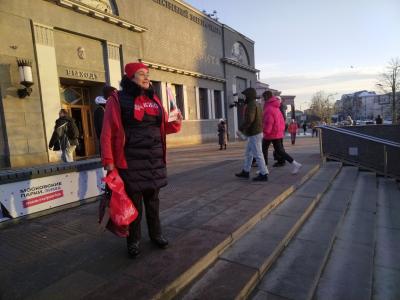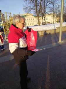 В среду, 28 февраля, активисты Московского городского регионального отделения ВЖС «Надежда России» во главе со своим руководителем Юлией Михайловой организовали акцию по раздаче буклета и спецвыпуска газеты «Правда Москвы» с материалами предвыборной программы кандидата от КПРФ Н.М. Харитонова около станции метро «Арбатская» рядом со знаменитым кинотеатром «Художественный».