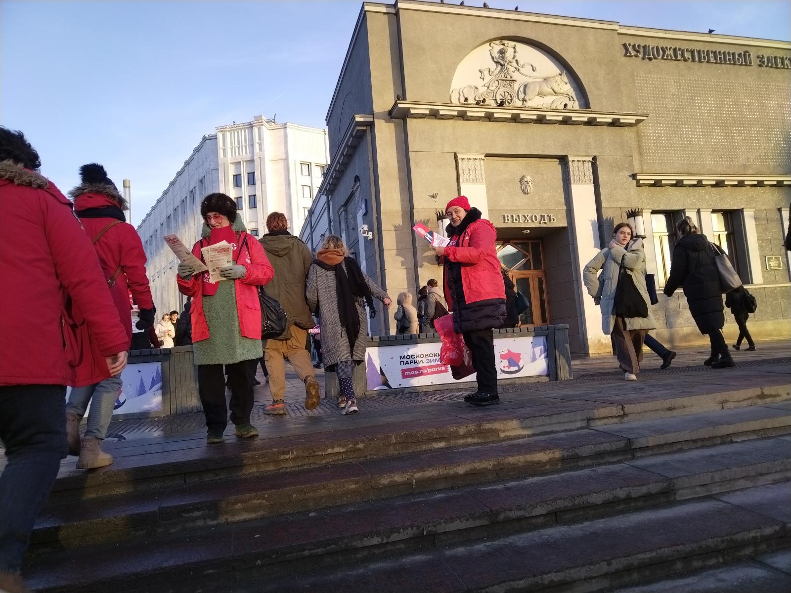 Женщины и мужчины в красных куртках раздавали буклеты и газеты, в которых также преобладал красный цвет. Энергичная команда в красном привлекала внимание большого числа москвичей. Многие не просто брали АПМ, но и останавливались, чтобы уточнить какие-то пункты программы кандидата и позицию КПРФ по тем или иным вопросам. При этом доля молодых людей среди тех, кто проявлял заинтересованность, преобладала. Несколько человек, задумавшись о возможности вступления в ряды коммунистов, взяли контакты горкома.