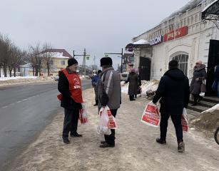 Утро началось с информационной работы на рынке посёлка Лух. Жителям раздавались пакеты «За Николая Харитонова!», укомплектованные специальным выпуском газеты «Правда», еженедельным выпуском газеты «Слово Правды», буклетом кандидата в Президенты страны от КПРФ Николая Харитонова. Предлагаемые материалы принимались людьми с улыбкой, добрым словом и благодарностью.