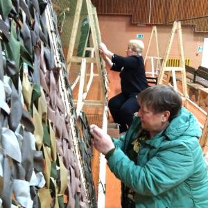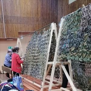 Число волонтёров с каждым днём растёт. Каждый занят своим делом: кто-то натягивает сети, оплетает их, кто-то вяжет, кто-то готовит ленты. Сотни метров специальной ткани, разрезанной на станках, надо скрутить в бобины перед тем, как начать плести сети. В этом волонтёрам помогают семьи Макаровых, Чуриковых, Медведевых, Поповых, детсадовцы, ветераны труда Анна Андреевна Тимакина, Татьяна Николаевна Денисова, Надежда Николаевна Фёдорова, Александра Максимовна Попова, самая старшая из женщин, ей 96 лет.
