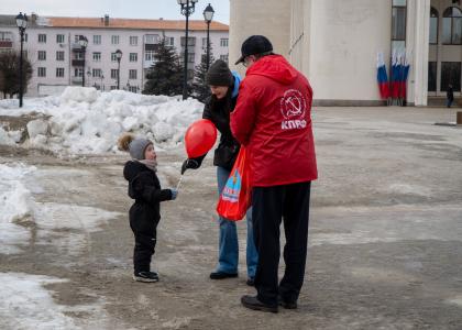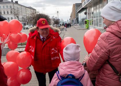 Поздравления от кандидата на должность Президента Российской Федерации Николая Михайловича Харитонова с Днем 8 Марта депутаты передавали всем встречным землячкам.
